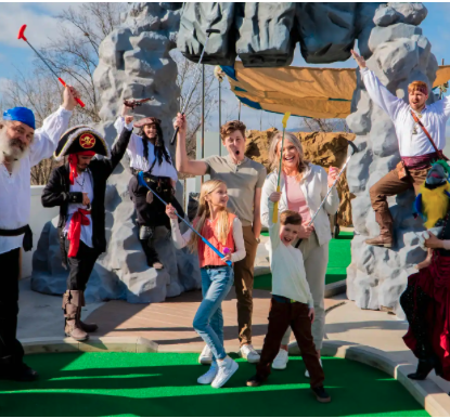 Sky Pirates of Mermaid Bay is an immersive mini golf adventure where swashbuckling pirates and mythical mermaids collide! Located in the heart of Pigeon Forge, this family-friendly course takes players on a journey through shipwrecks, sea caves, and treasure-filled coves, all set in a vibrant, ocean-themed world. It’s the perfect blend of fantasy and fun for all ages.